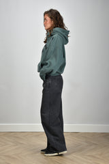 Our model Lise is 1,73m and Lise heeft maat 36/S/27. deze trui heeft een oversized fit
