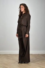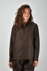 Nine In The Morning blouse Alaska met lange mouwen en knoopsluiting bruin