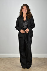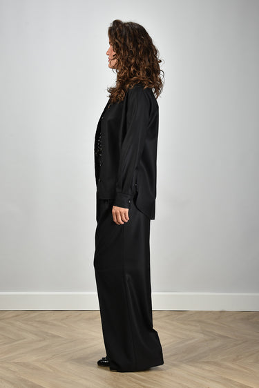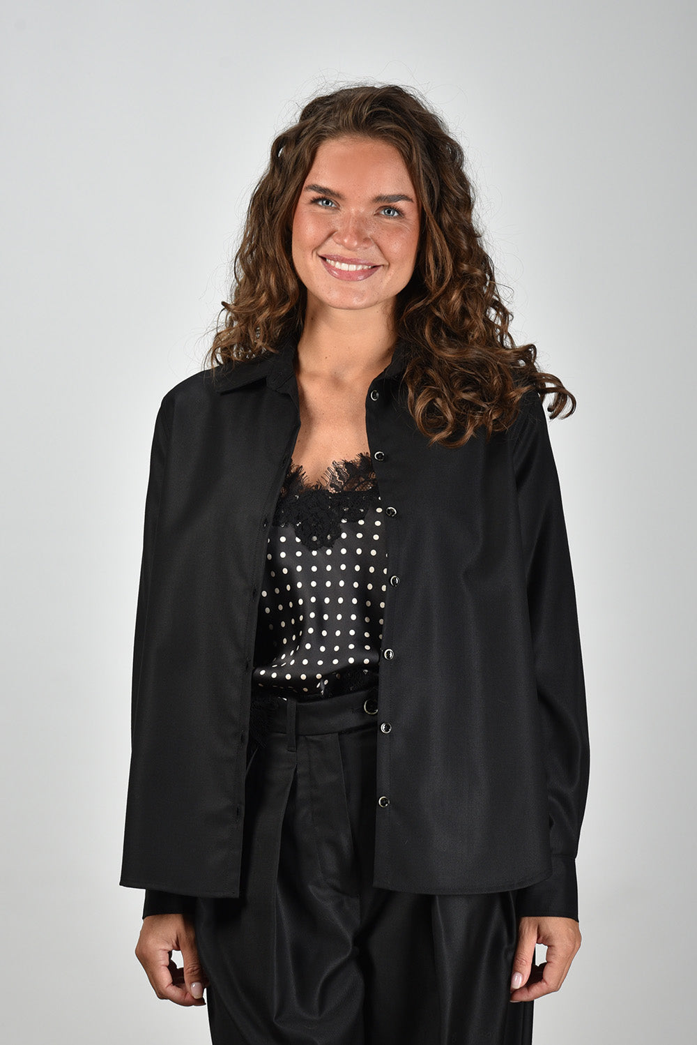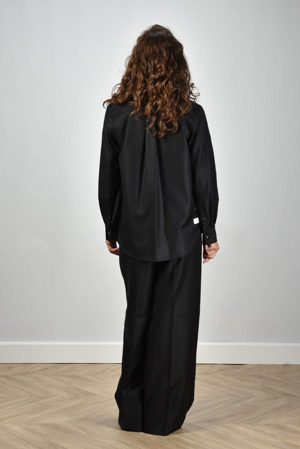 Nine In The Morning blouse Alaska met lange mouwen en knoopsluiting zwart