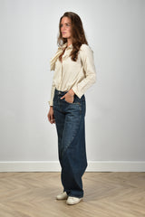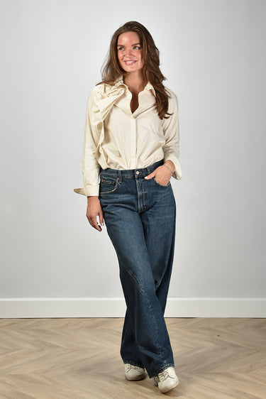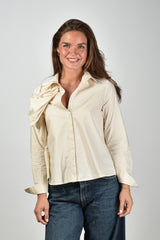 Psophia blouse met bloem op de linkerborst en knoopsluiting beige