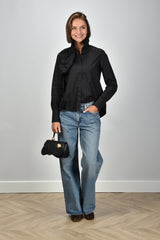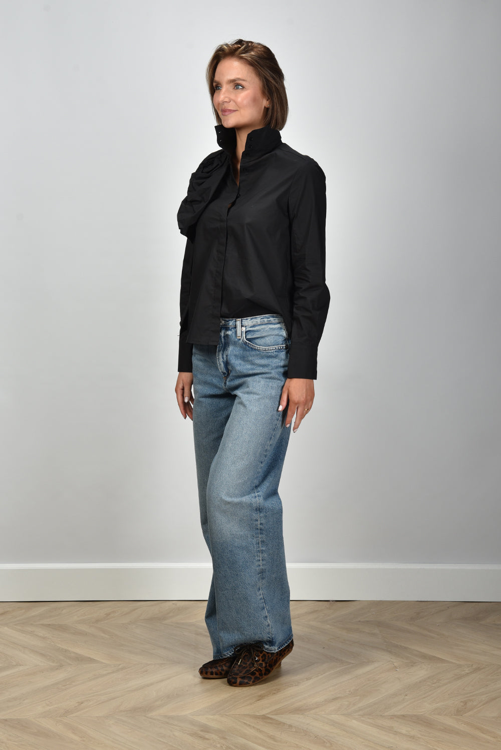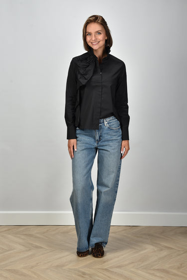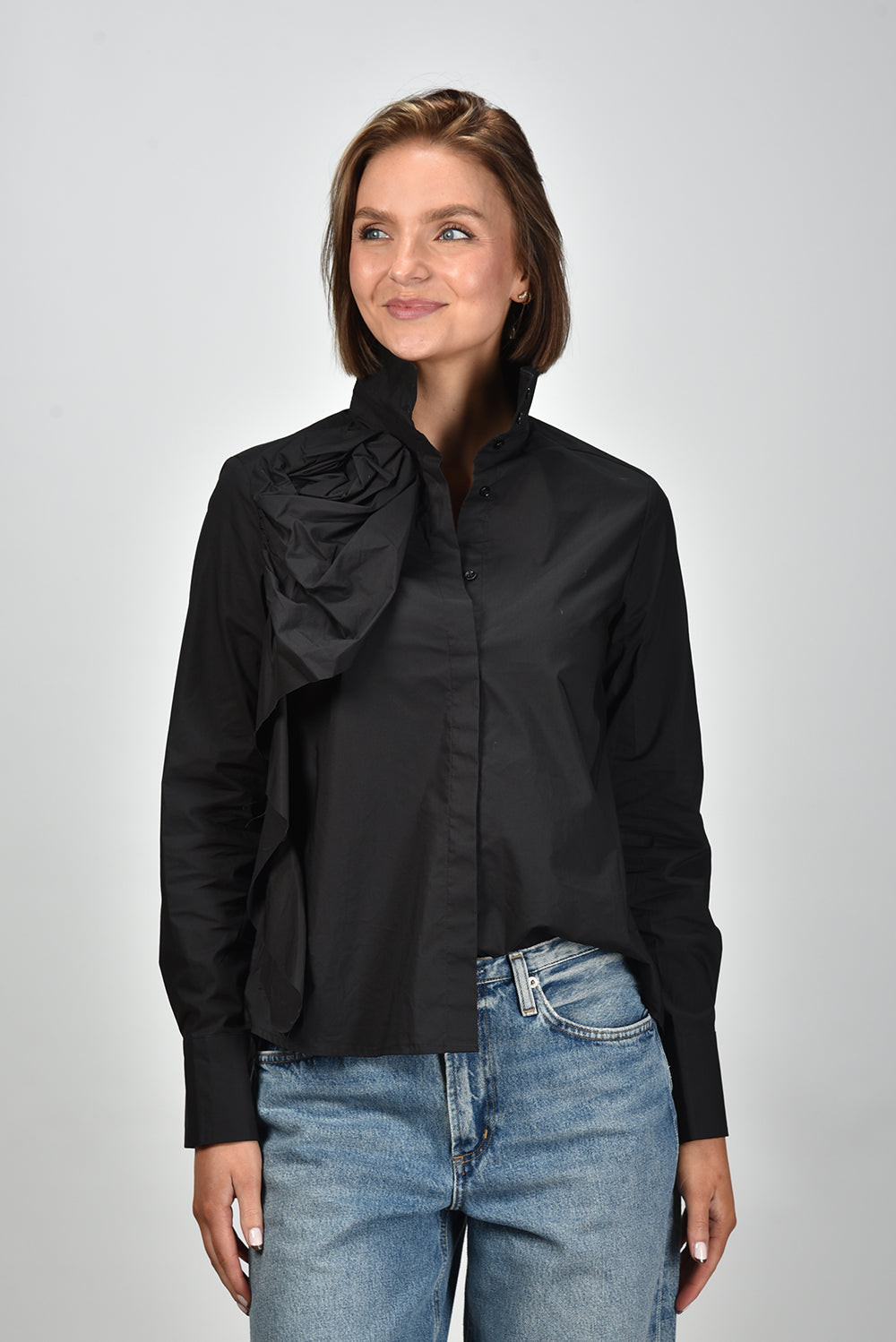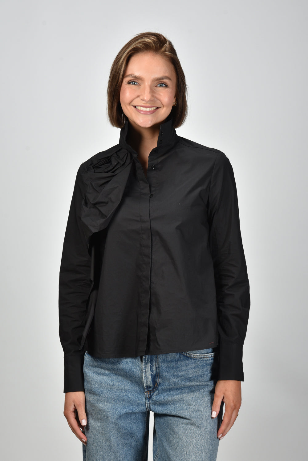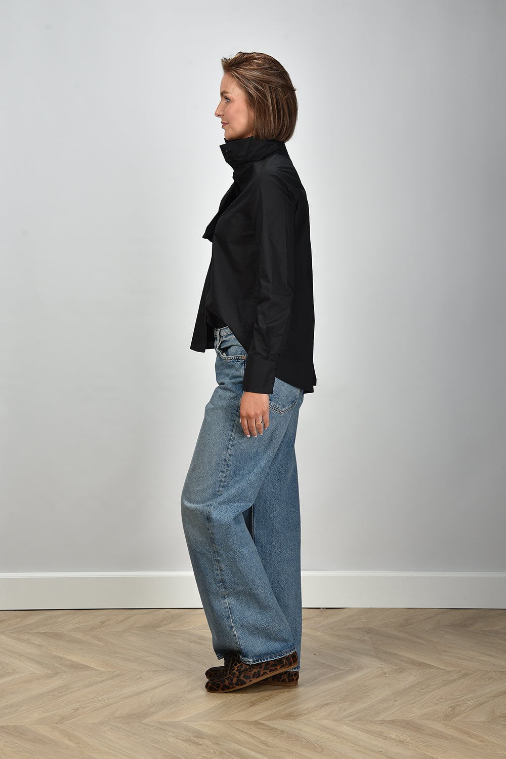 Psophia blouse 225SHR2521 met hoge kraag zwart