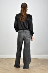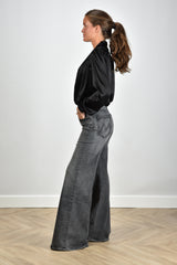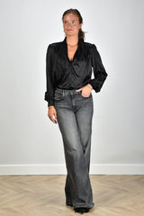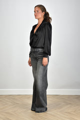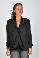 Sage & Ivy blouse Fonda Satin Silk with v-neck black