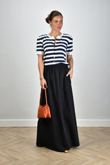 Here is the Sage & Ivy vest Hazel white, a refined garment with blue and white stripes. Made of 100% cotton for optimum comfort. This product has a regular fit and is ideal for various occasions. Model Lise wears size M with a height of 1.73m. Article number: HAZEL-Stripes.