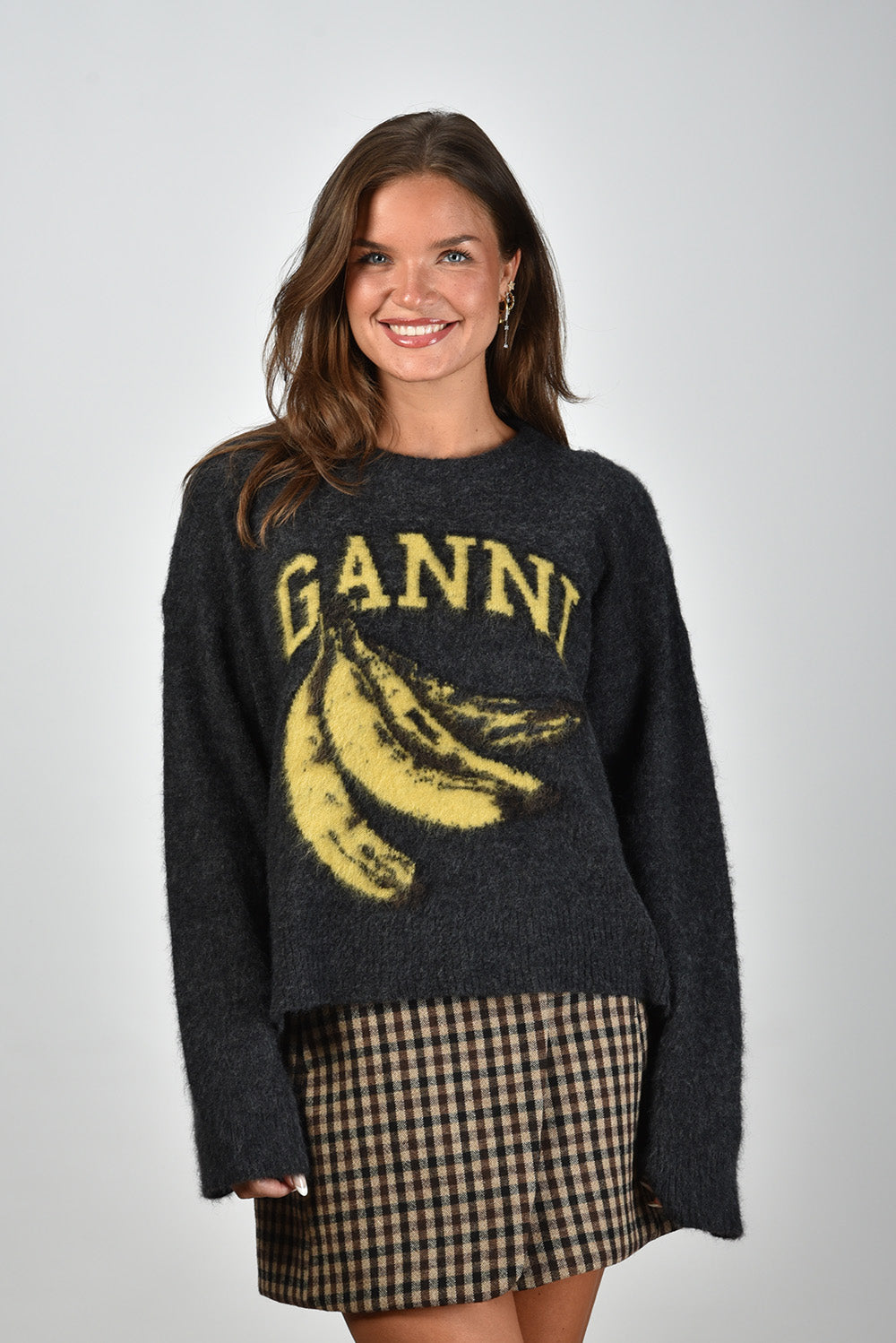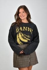 Ganni trui K2516 phantom met bananen opdruk grijs
