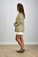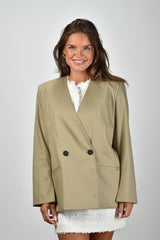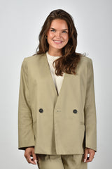 Our model Lise is 1,73m and Lise heeft maat 36/S/27. Deze blazer valt normaal op maat