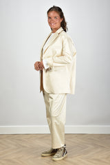 Behold the Sea Me Happy blazer Bailey Shiny Cotton in beige. This oversized blazer, made of 52% cotton, 45% polyester and 3% elastane, offers an elegant look with a shiny finish. Please note: runs large. Model Lise is 1.73m and wears size M. Article number: BaiBlaShiCot-101-Ivory.