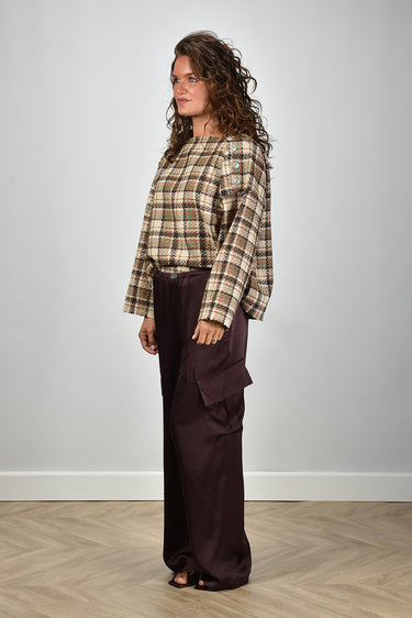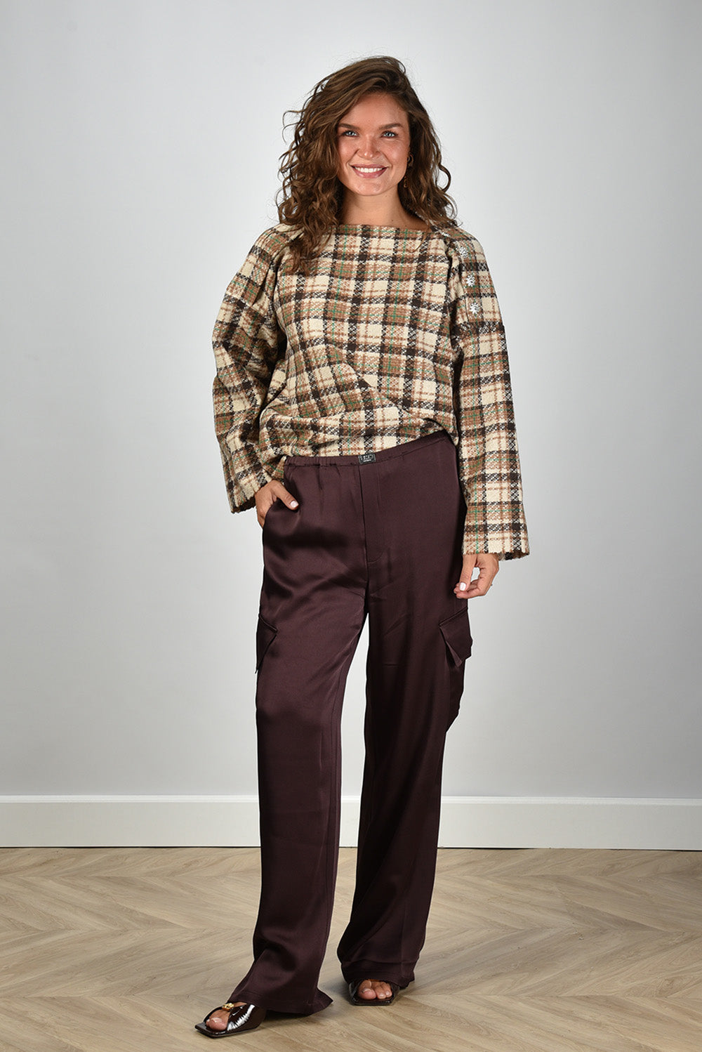 Sea Me Happy broek Gisèle Satin Pockets met elastieke band bruin