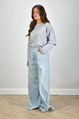 Check out the Sea Me Happy Super Woody Jeans Strass pants in light blue. These luxurious jeans, made of 100% cotton, offer a regular fit and are perfect for any occasion. Lise wears size 38/M/28 and is 1.73m tall. Washing instructions: 30°. Article number: SupWooJeaStra-412-Light Blue.
