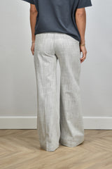 Here you see the Sea Me Happy trousers Woody Woven in black/white. These stylish trousers are made of 100% cotton and offer a regular fit for optimum comfort. Lise, with size M and height of 1.73m, shows how versatile this fashion choice can be. Washable at 30°.