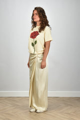Our model Lise is 1,73m and Lise heeft maat 36/S/27. deze rok valt normaal op maat