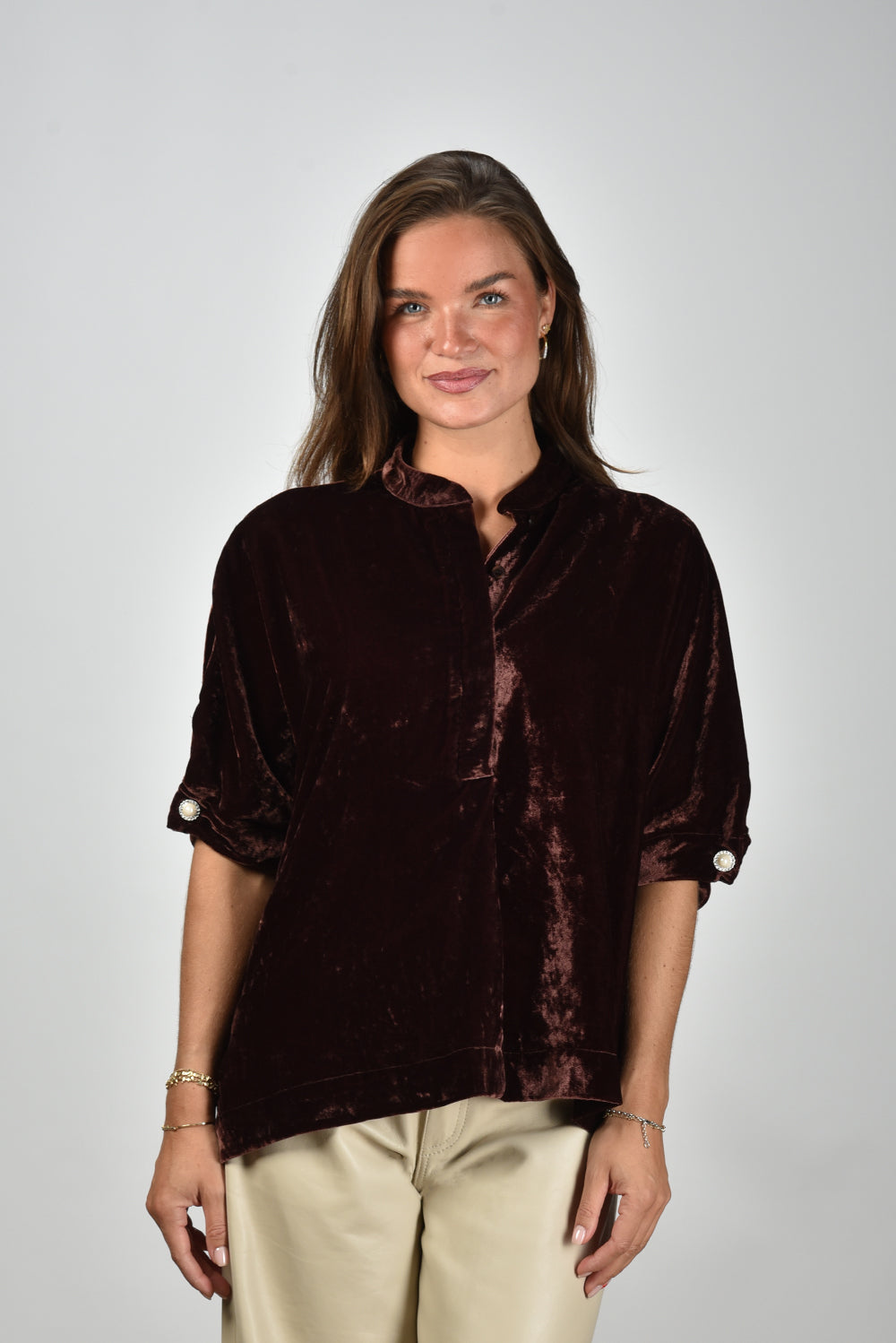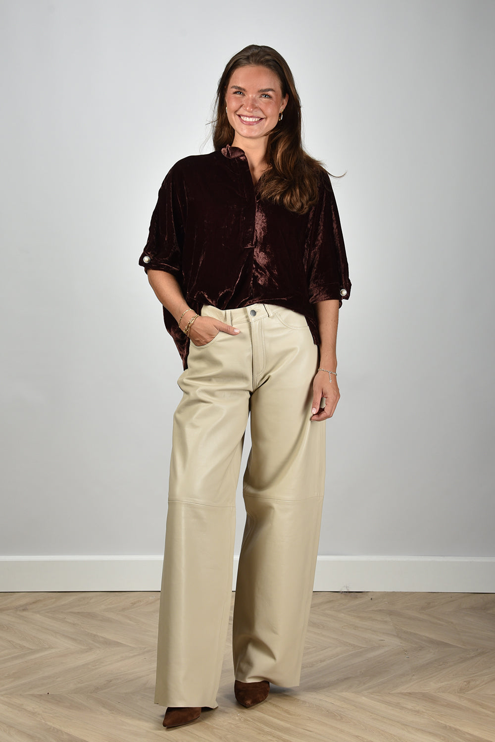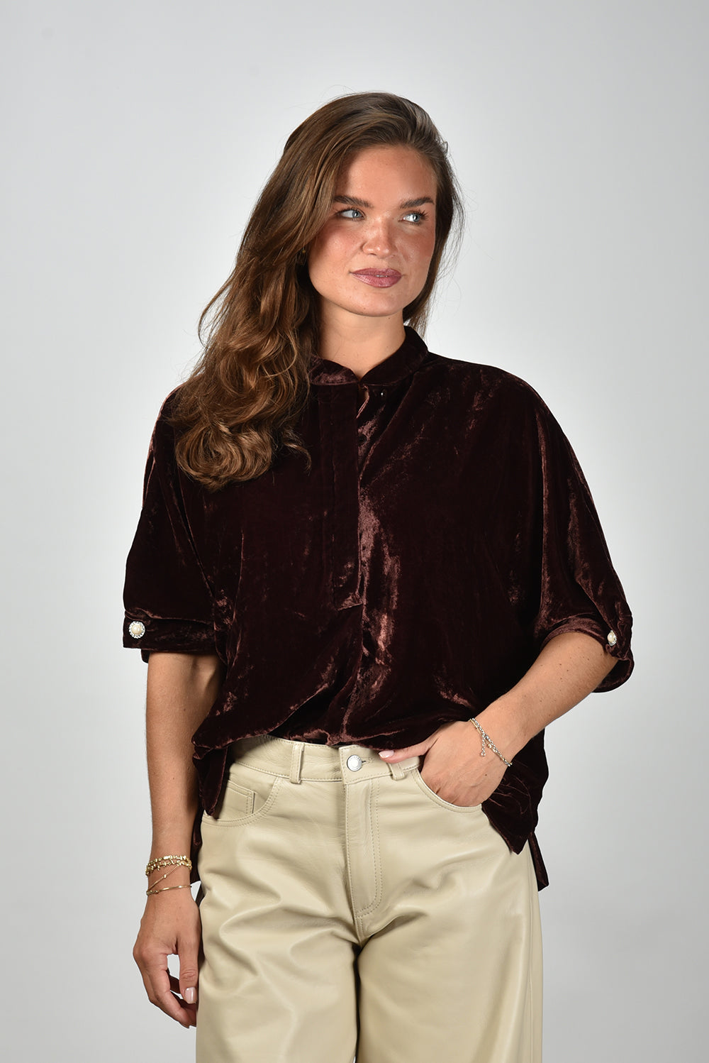 Our model Lise is 1,73m and Lise heeft maat 36/S/27. Deze blouse valt normaal op maat