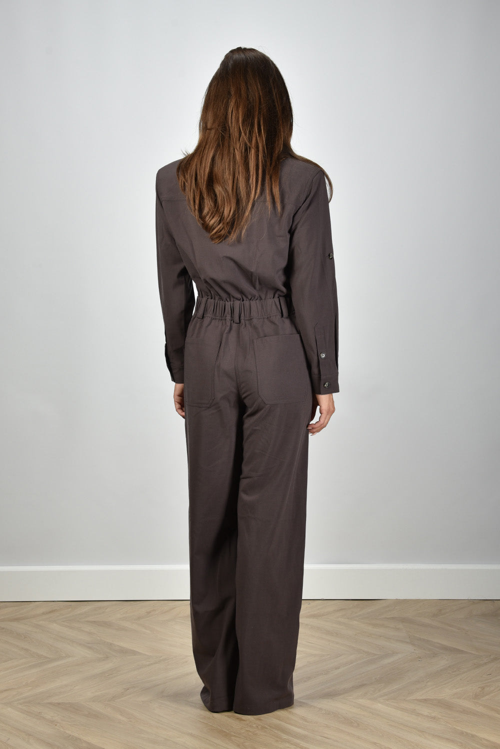 Self Portrait jumpsuit met uitneembare schoudervullingen bruin