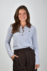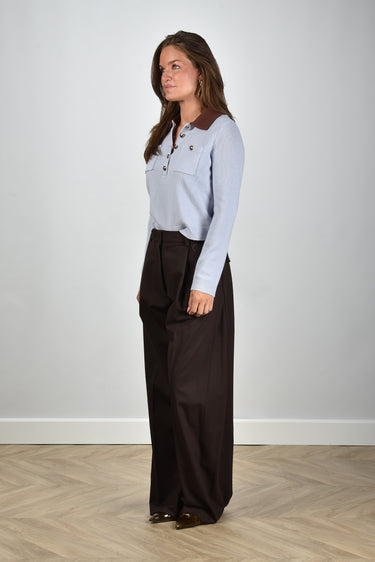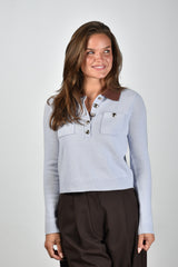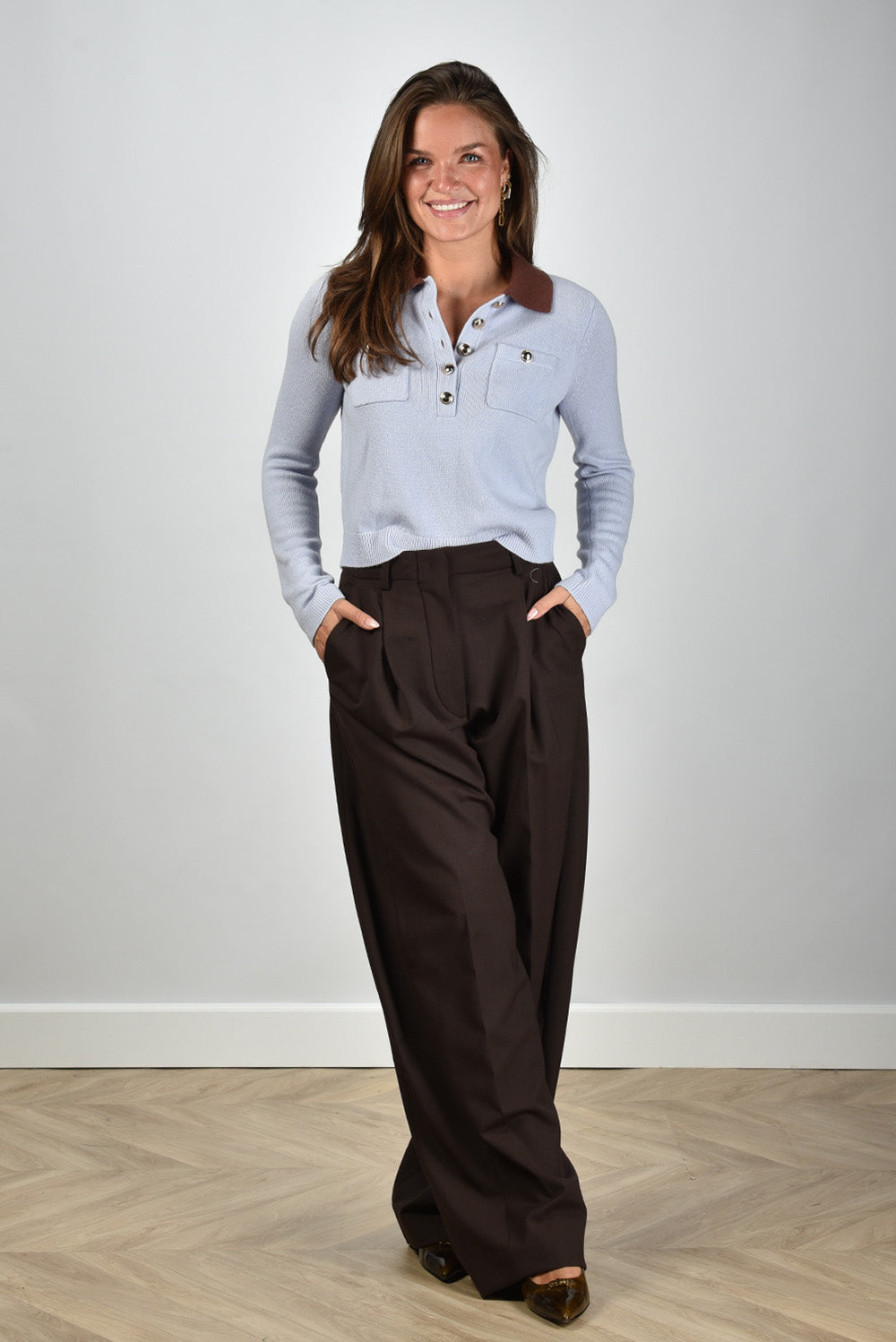 Self Portrait trui gebreid met glanzende gouden knopen blauw