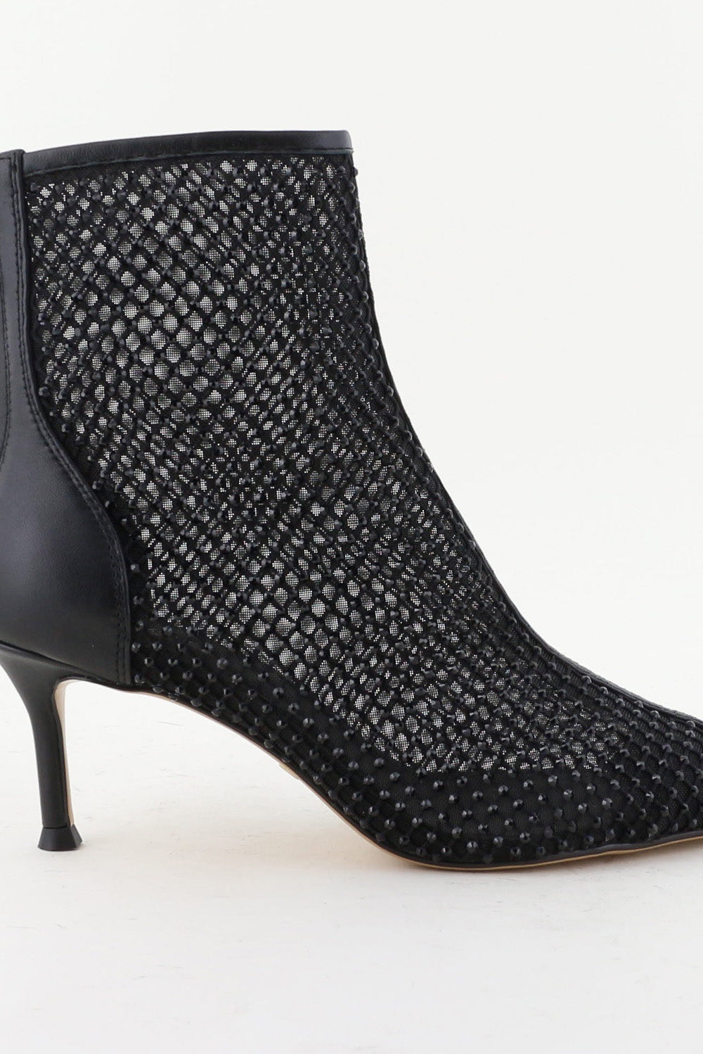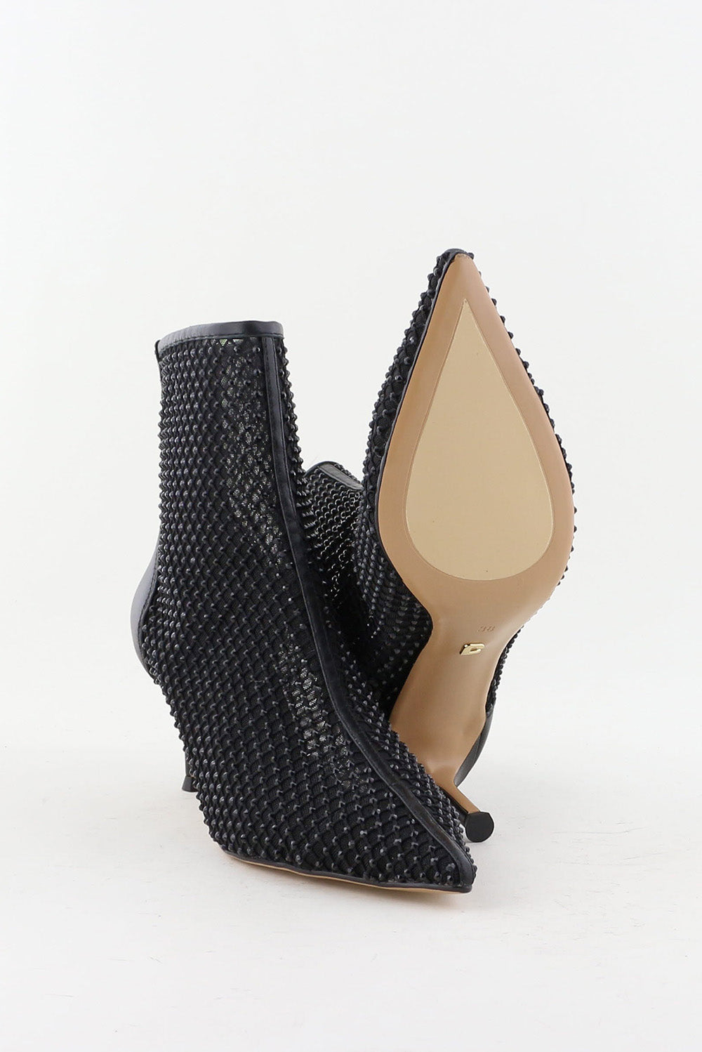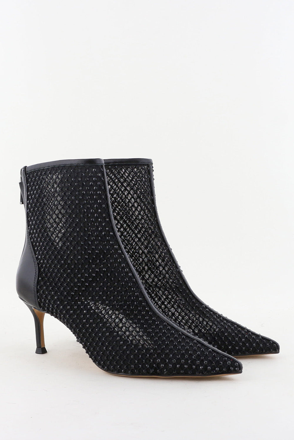 Lola Cruz enkellaarsjes met mesh en strassteentjes zwart