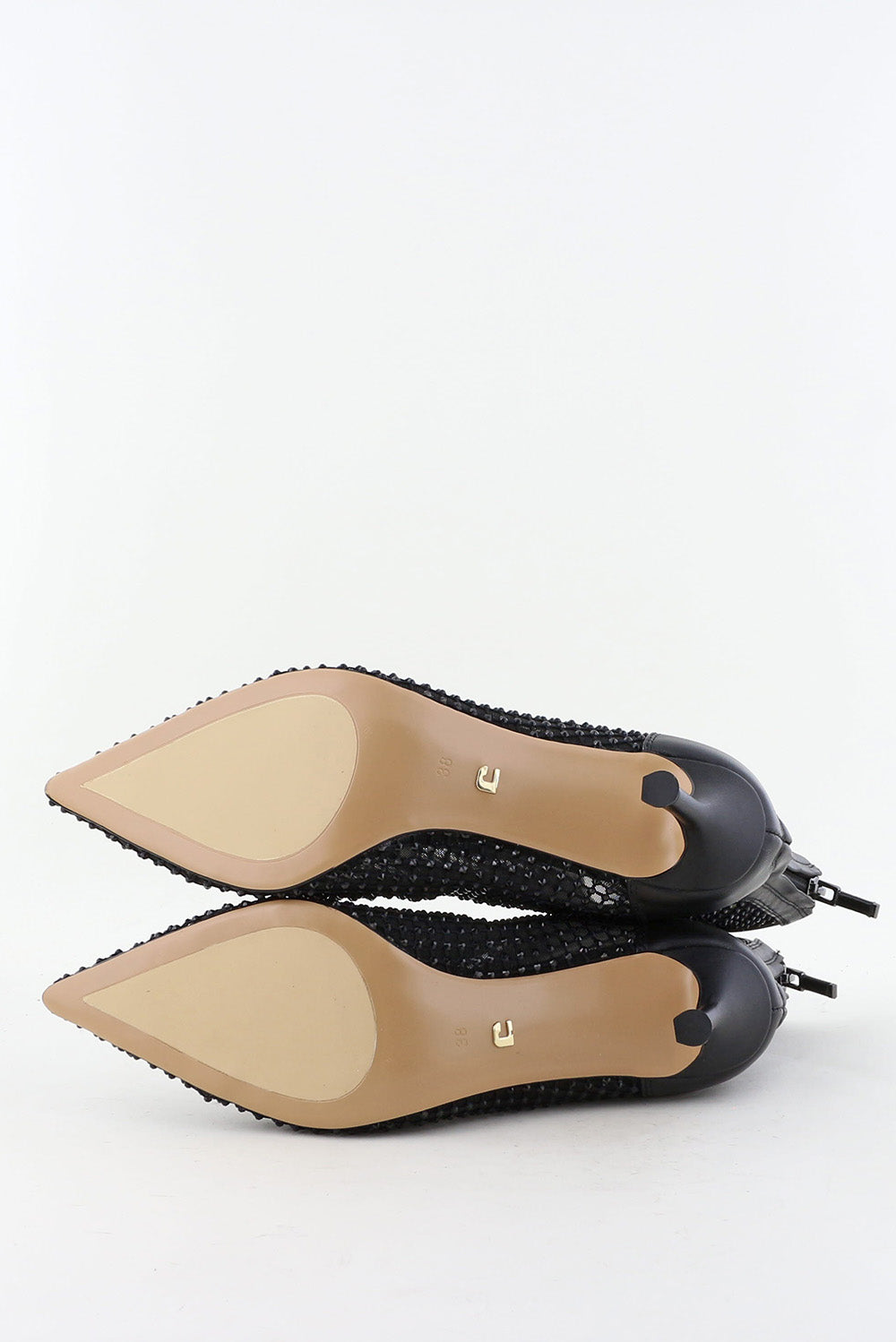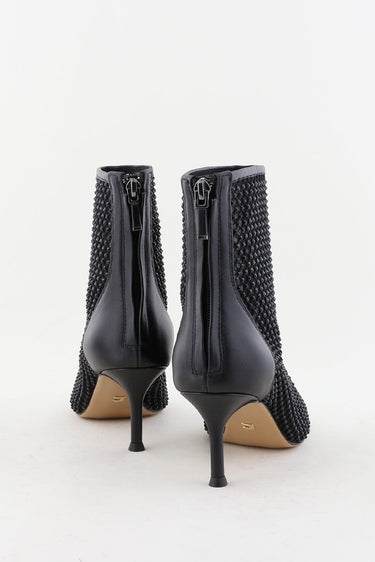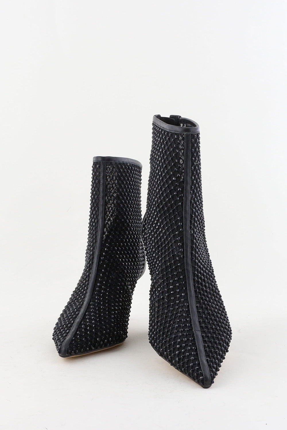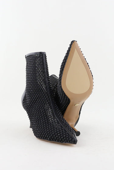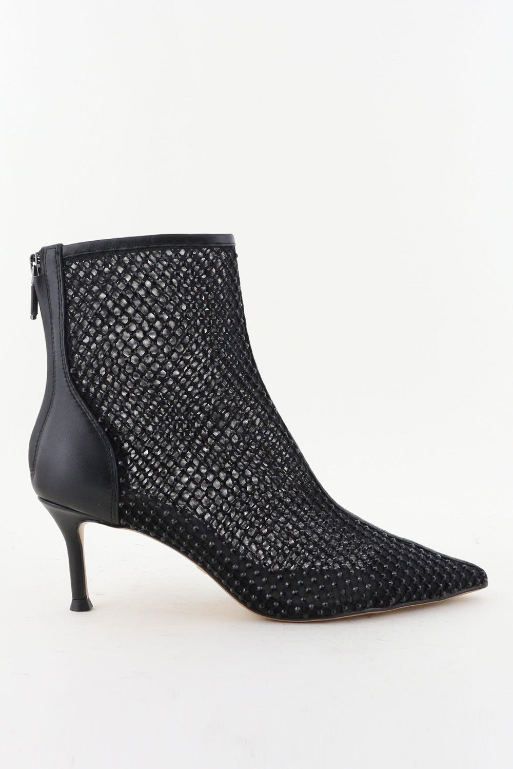 Lola Cruz enkellaarsjes met mesh en strassteentjes zwart
