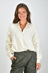 Check out the Academia blouse Gioia in cream, designed by Academia. This elegant blouse is made of 80% cotton and 20% wool, which provides a luxurious look and comfort. Model Lise wears size 38/M/28 and is 1.73m tall. This product has a regular fit. Article number: 73D11-920-Unito Nat.