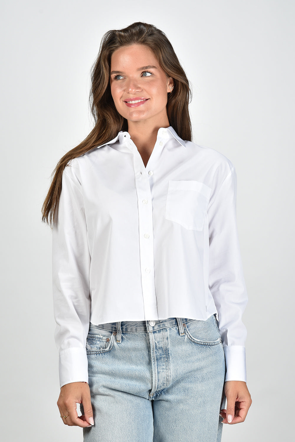 View the Academia blouse Mia white, designed by Academia. This elegant blouse is made of 100% cotton and offers a regular fit. Lise wears size 38/M/28 and is 1.73m tall. Washing instructions: 30°. Article number: 10C2-000-Unito Bianco.