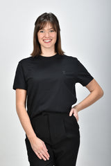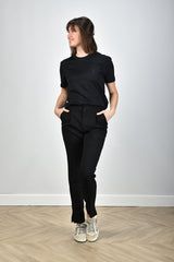 The black Ami Paris t-shirt, model ADC, is a timeless and versatile piece that is perfect for a stylish and casual look. The subtle Ami logo is subtly present on the chest and adds a touch of brand style to your outfit. This t-shirt has a classic fit with short sleeves and a round neck, making it comfortable to wear in different seasons. Model is 1.75m, is size S and wears size S.