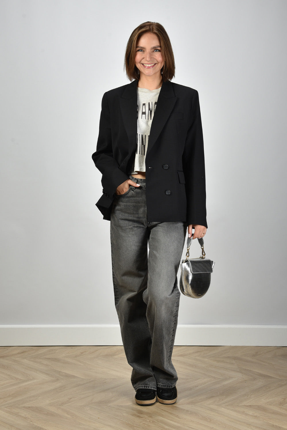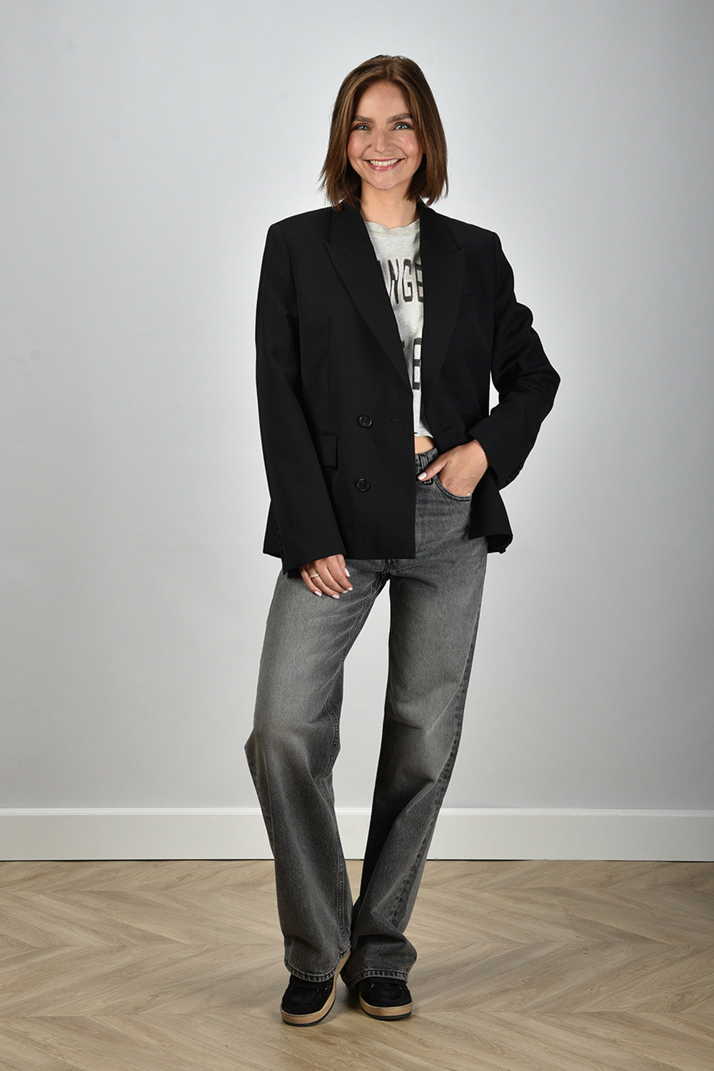 Our model Esmee is 1,74m and 36/S/25. Deze blazer valt normaal op maat, we adviseren je je eigen maat te bestellen.