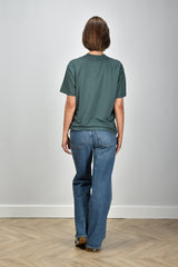 Our model Esmee is 1,74m and Esmee heeft maat 36/S/25. Dit t-shirt valt normaal op maat