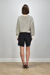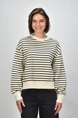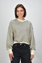 Our model Esmee is 1,74m and Esmee heeft maat 36/S/25. deze trui valt normaal op maat