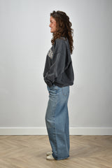 Our model Lise is 1,73m and Lise heeft maat 36/S/27. deze trui heeft een oversized fit