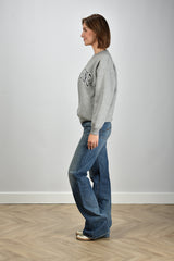 Our model Esmee is 1,74m and Esmee heeft maat 36/S/25. Deze trui valt normaal op maat