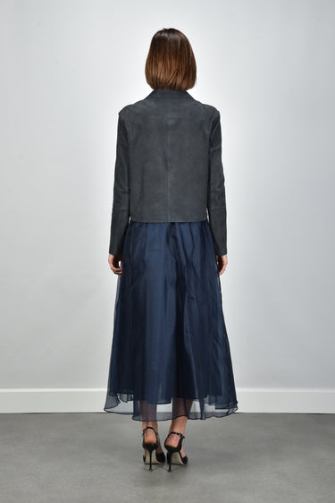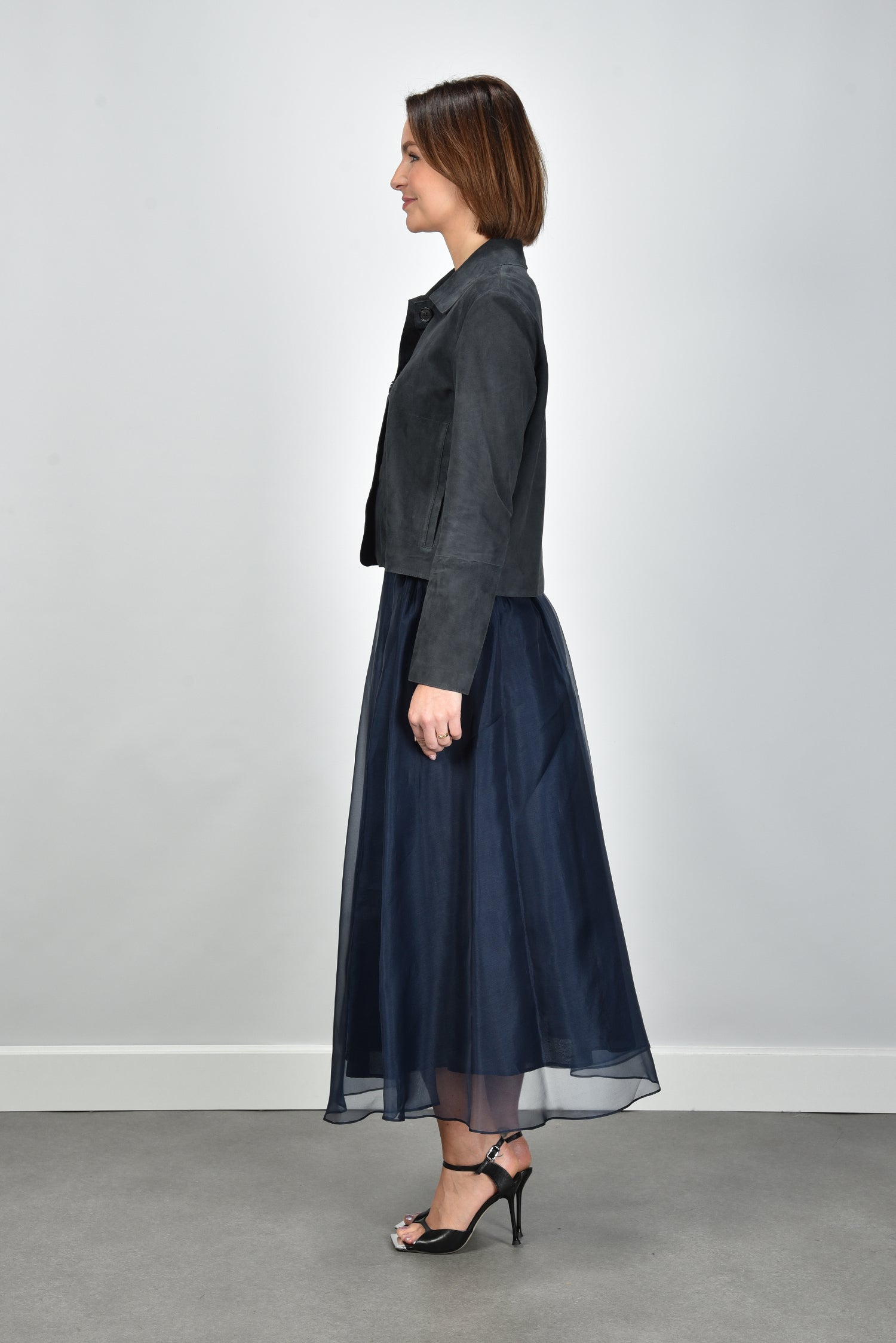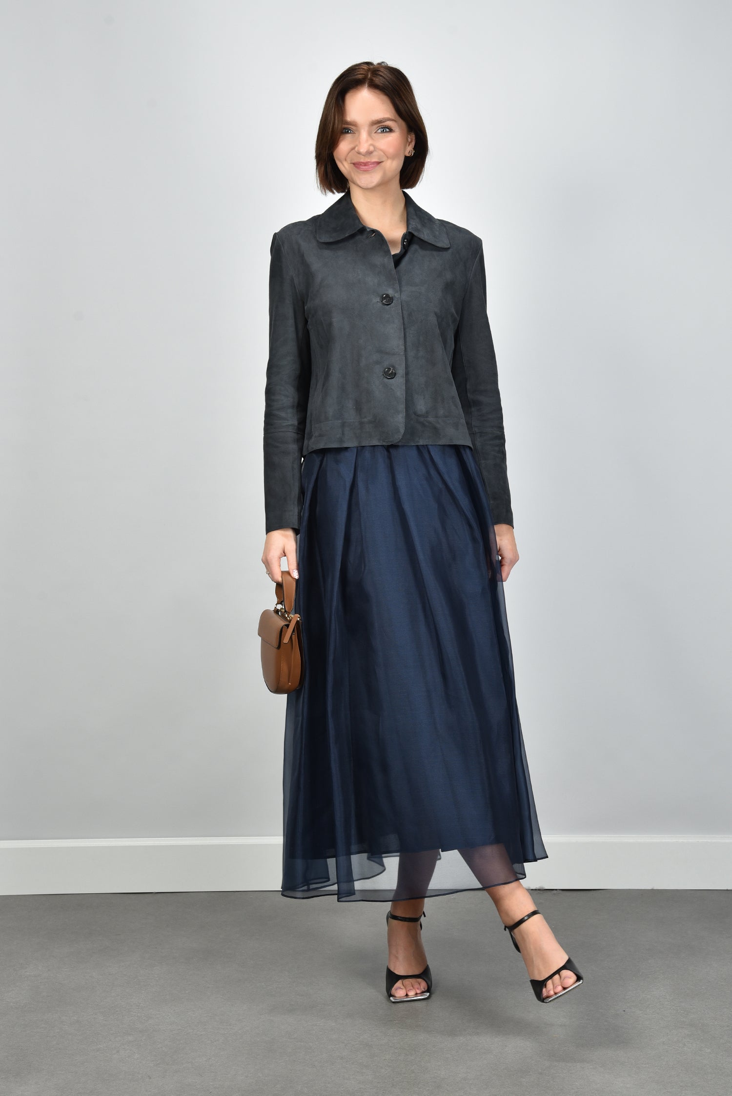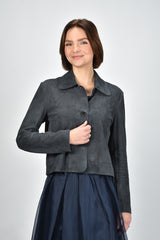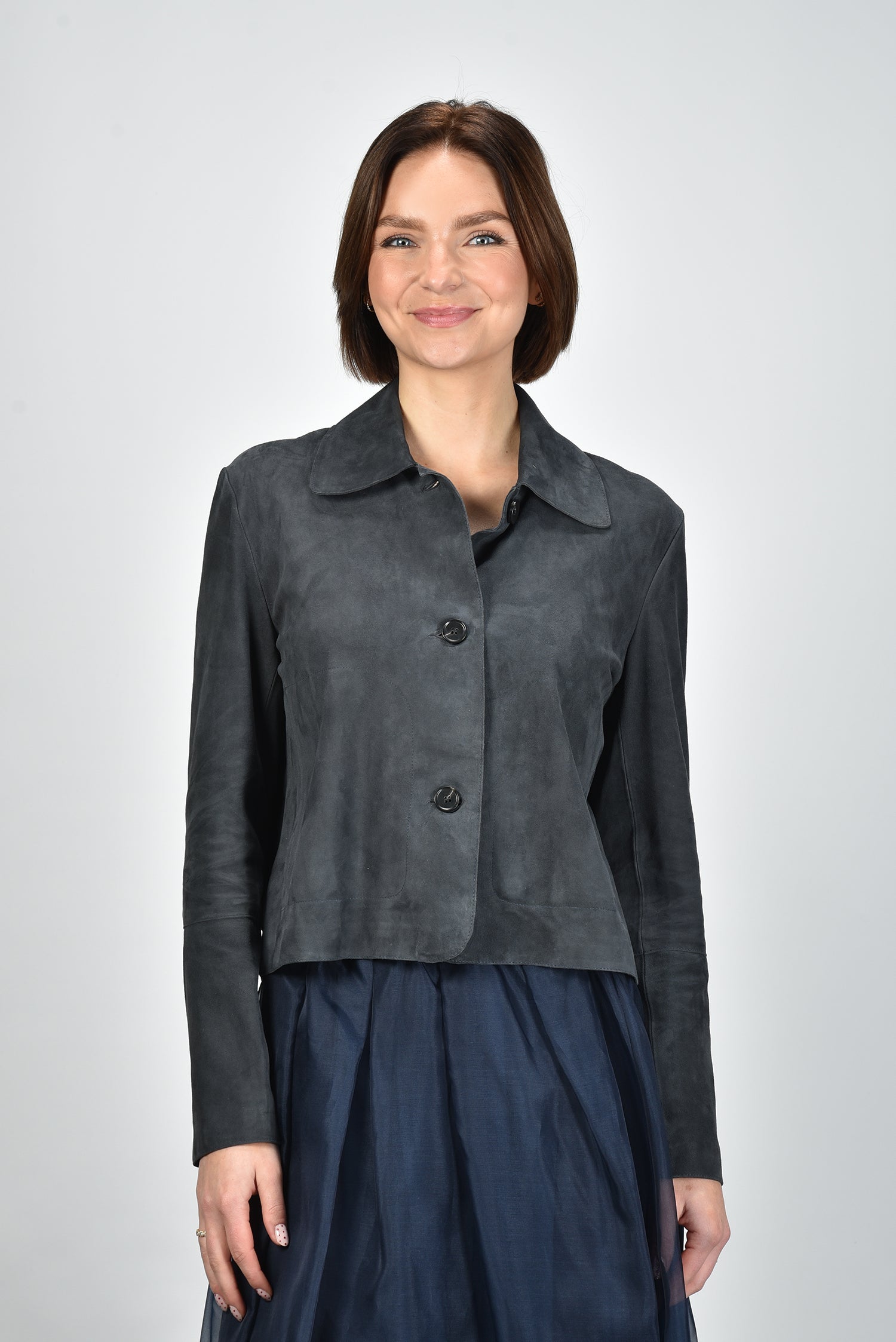 Het suede jack Emy royal van ARMA heeft een korte, rechte snit die mooi aansluit zonder te strak te zitten. De brede kraag en grote donkere knopen geven het jack karakter, terwijl het zachte suède meteen kwaliteit uitstraalt. De diepe royal kleur zorgt voor een rijke uitstraling die goed combineert met neutrale tinten. De voorzakken voegen een praktisch detail toe zonder het design te breken. Dit jack valt normaal op maat en vormt een stijlvolle basis voor het voorjaar. Combineer het met de Morobe sandalen Mimi 05 black voor een ingetogen maar sterke look. ARMA staat bekend om zijn vakmanschap in leer en suède, wat ook in dit ontwerp direct herkenbaar is.