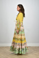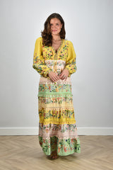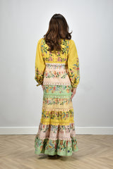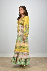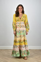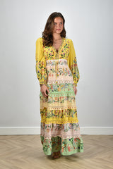 Farm Rio maxi dress with floral print and long sleeves multicolor