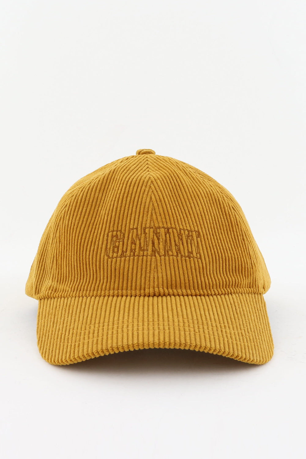 Cool cap by GANNI, model A5272, in a yellow color with a logo on the front. At the back the cap is adjustable by means of velcro. Wear the cap in combination with a trench coat for a casual and sporty look!