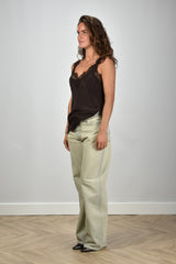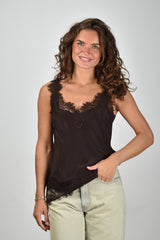 Gold Hawk zijden top GH1060 met kant bruin