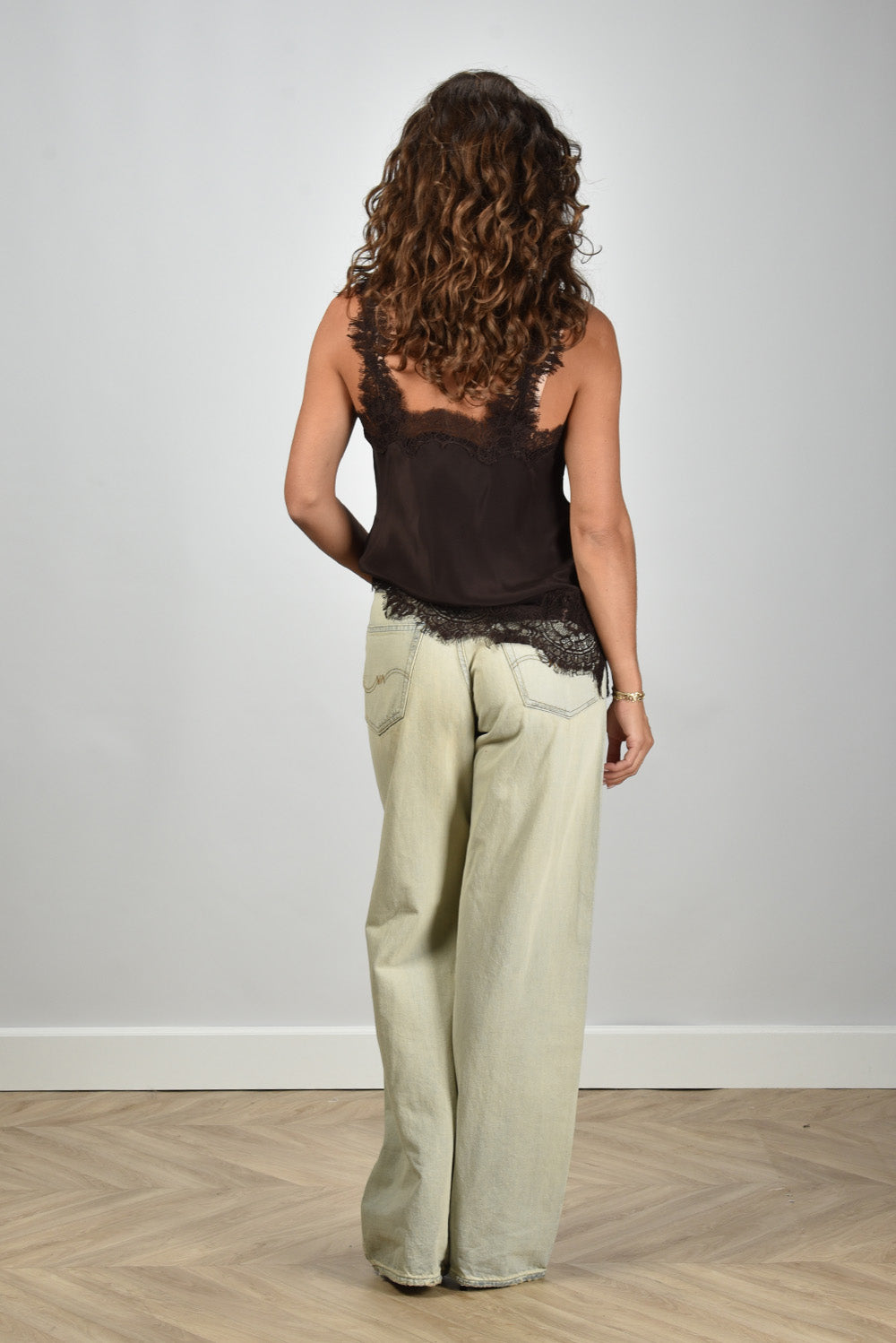 Our model Lise is 1,73m and Lise heeft maat 36/S/27. Deze top valt normaal op maat, we adviseren je je eigen maat te bestellen.