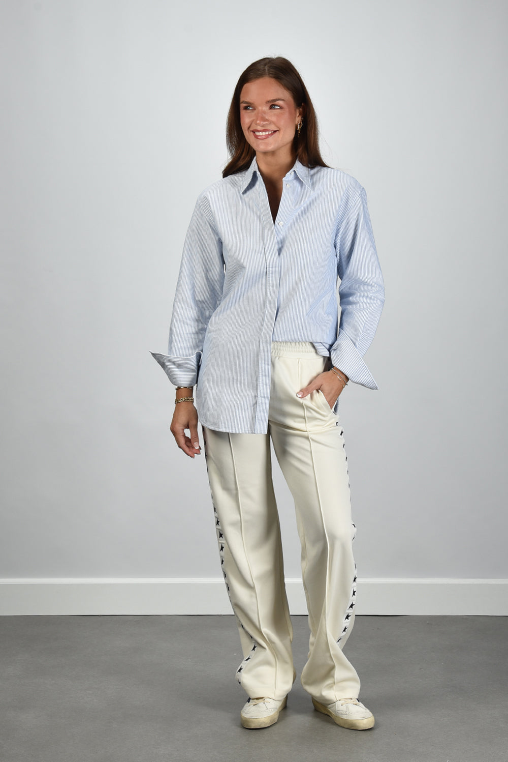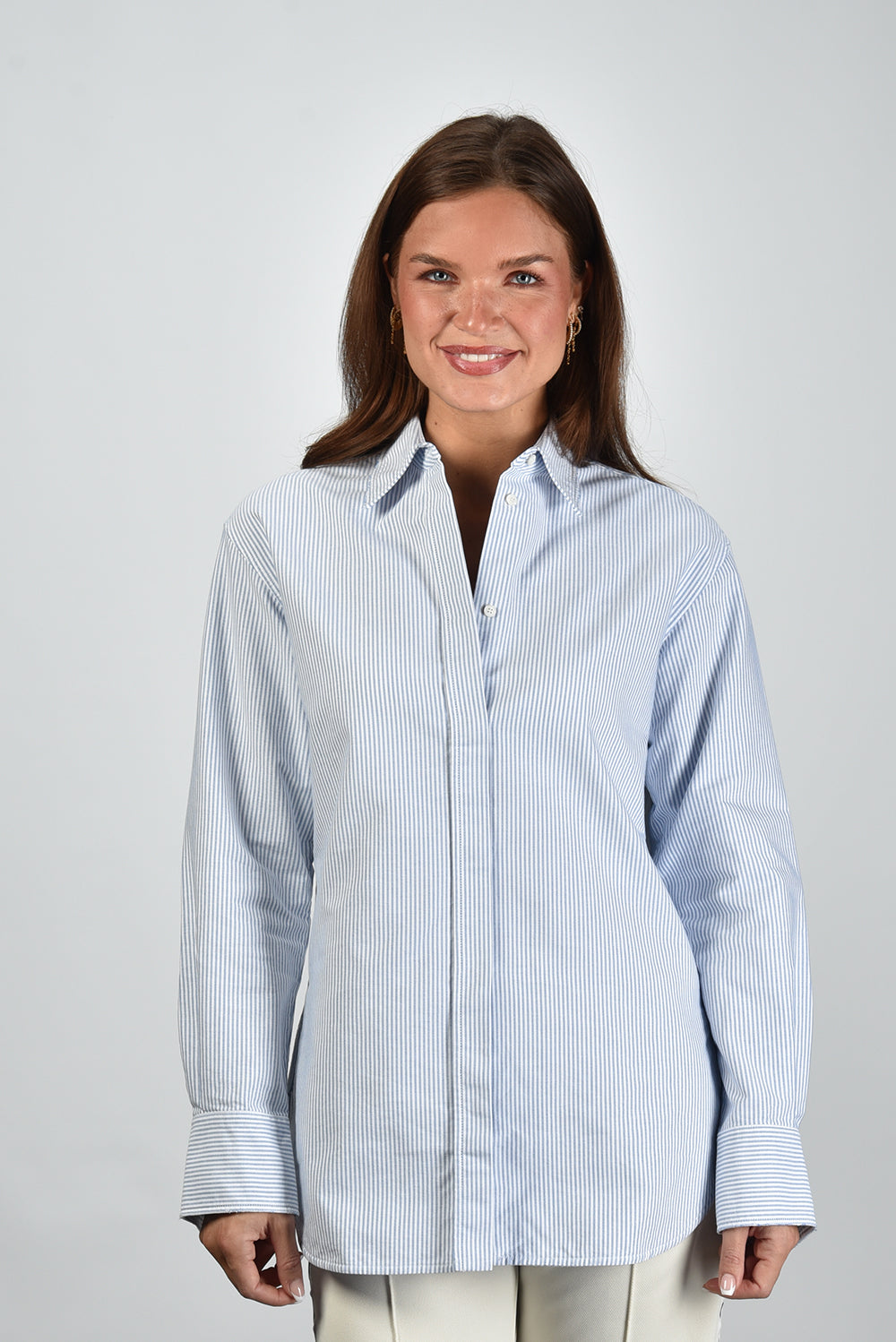 Our model Lise is 1,73m and Lise heeft maat 36/S/27. Deze blouse valt normaal op maat