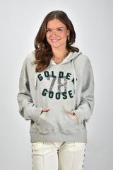 Behold the Golden Goose sweater grey, a refined garment made of 100% cotton. This sweater offers a regular fit and is designed in Grey Melange/Black/Jelly Bean colour combination. Perfect for various occasions with article number GUP02170.P001861.60583-Grey Melange/Black/Jelly Bean.
