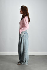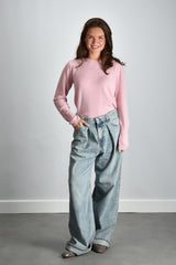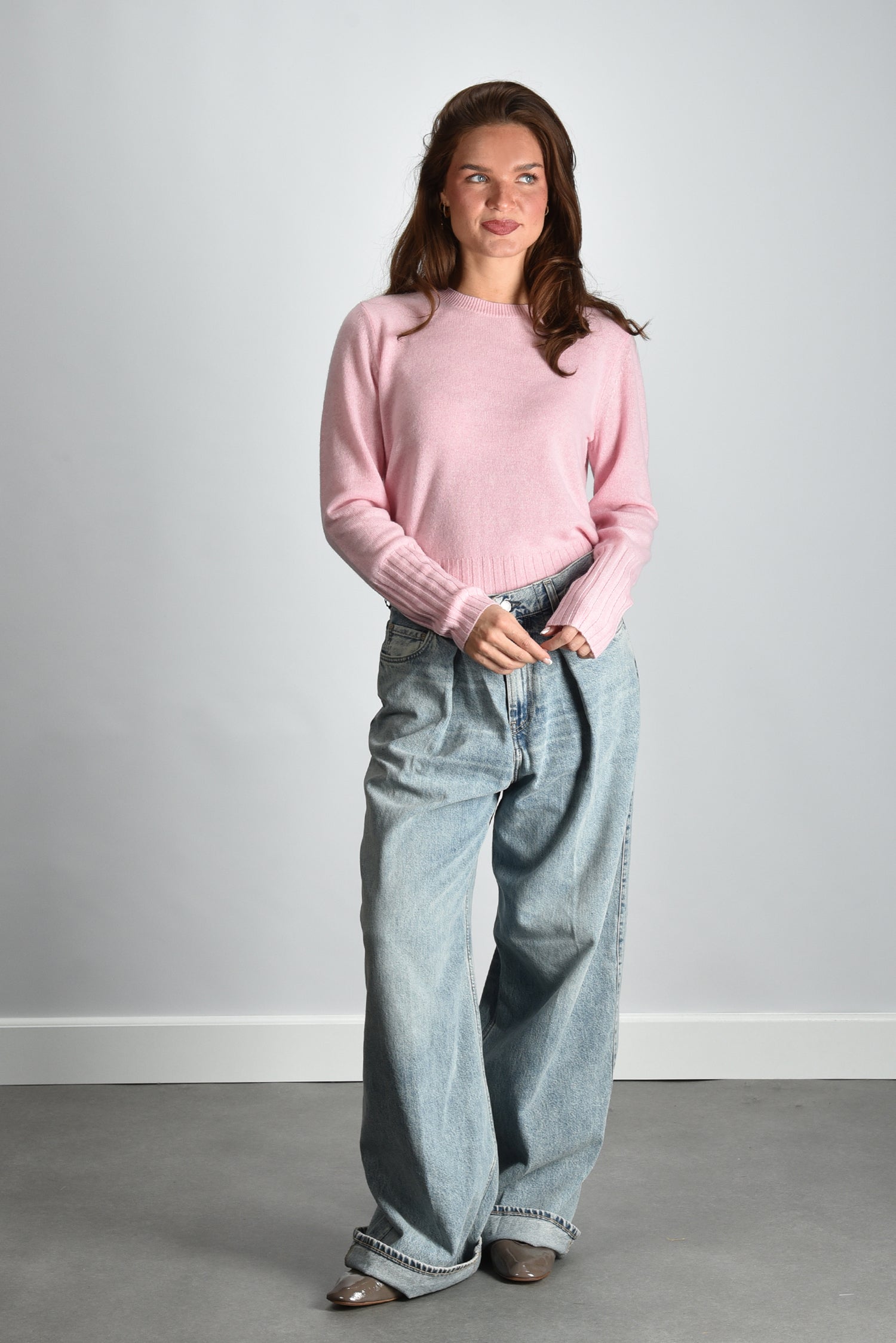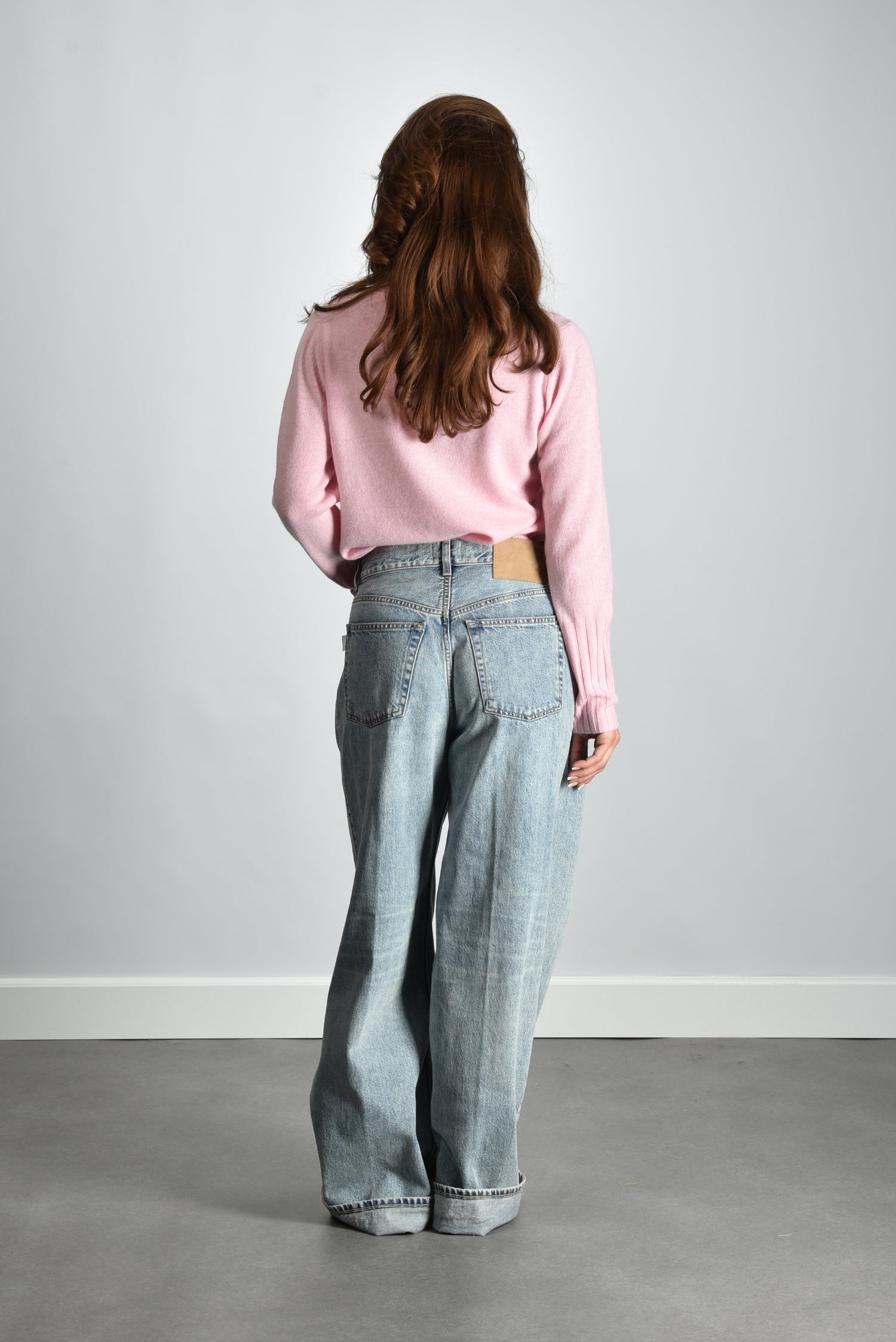 Our model Lise is 1,73m and Lise heeft maat 36/S/27. Deze trui valt normaal op maat