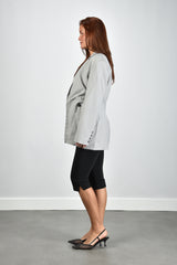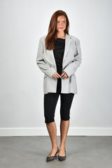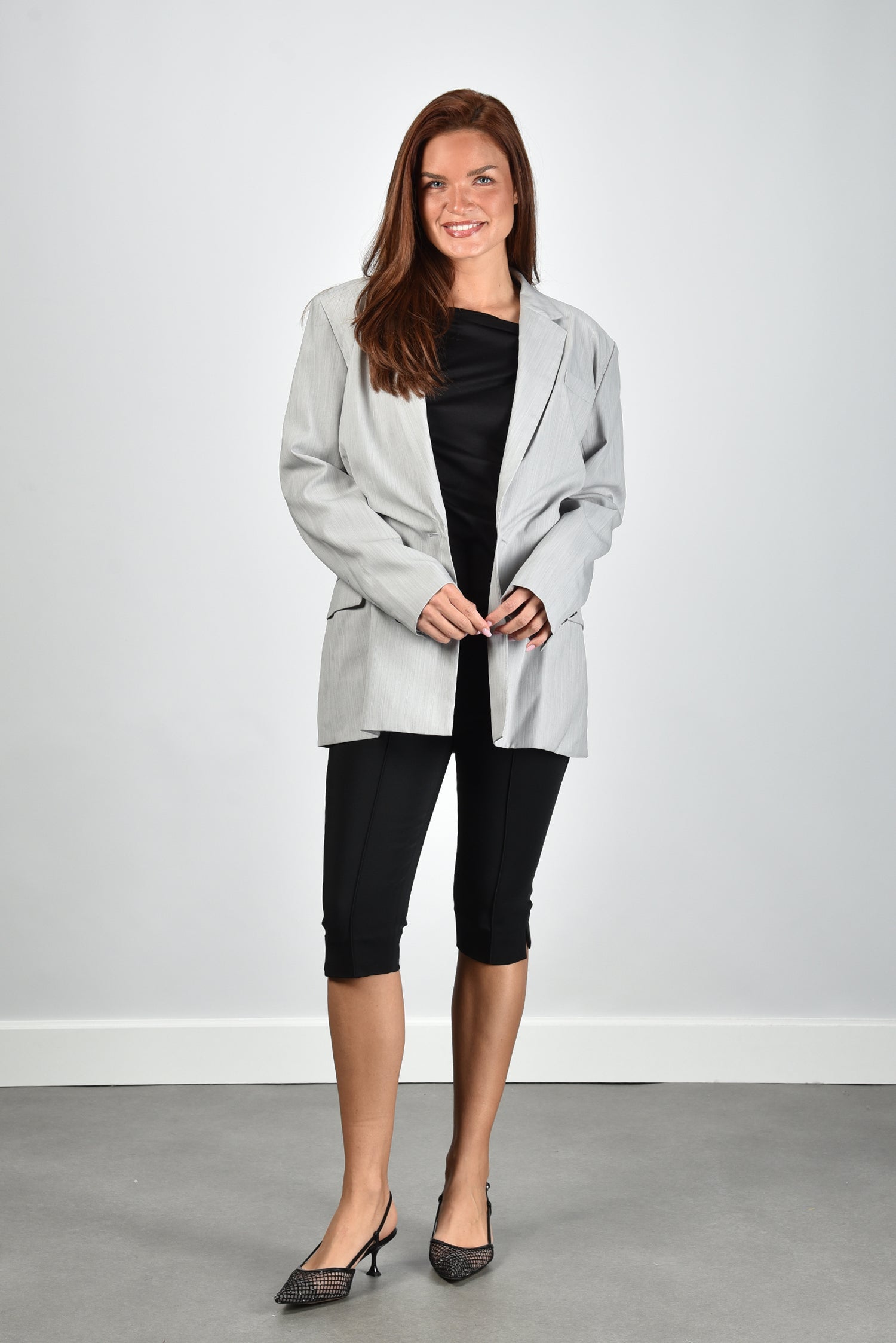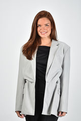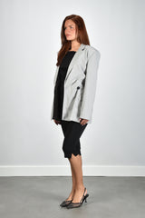De blazer Sunrise van IRO laat goed zien hoe sterk een doordachte snit kan uitpakken. De lichtgrijze steel jersey tint geeft het jasje een frisse, ontspannen uitstraling. De getailleerde vorm en de gestructureerde schouders zorgen voor een mooi silhouet, terwijl de klassieke reverskraag en de borstzak het geheel extra karakter geven. De stof van 68% wol en 32% polyester voelt stevig en netjes aan, precies goed voor dagen waarop je er verzorgd uit wilt zien zonder in te leveren op comfort. Combineer de Sunrise blazer met de Lola Cruz sandalen 188Z02BK negro voor een stijlvolle, moderne set met contrast.