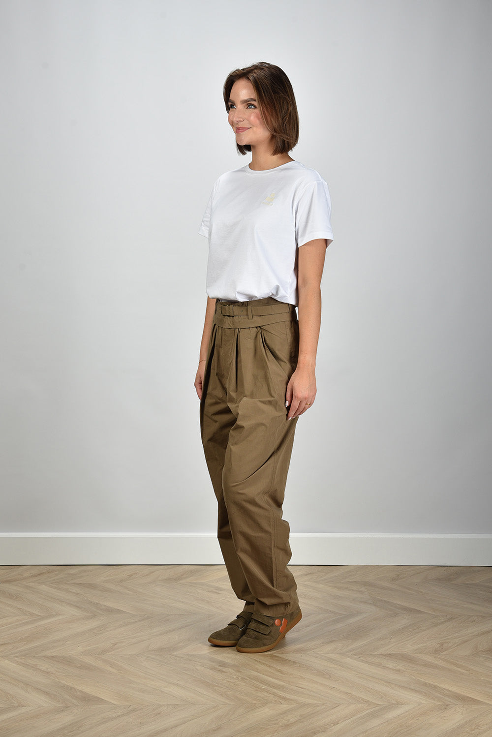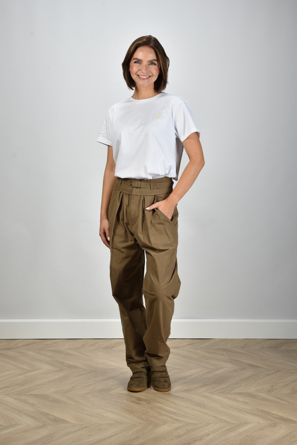 Our model Esmee is 1,74m and Esmee heeft maat 36/S/25. Deze broek valt normaal op maat