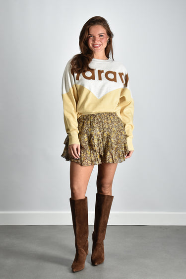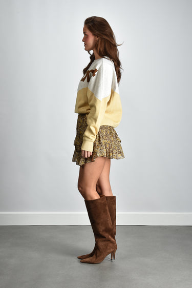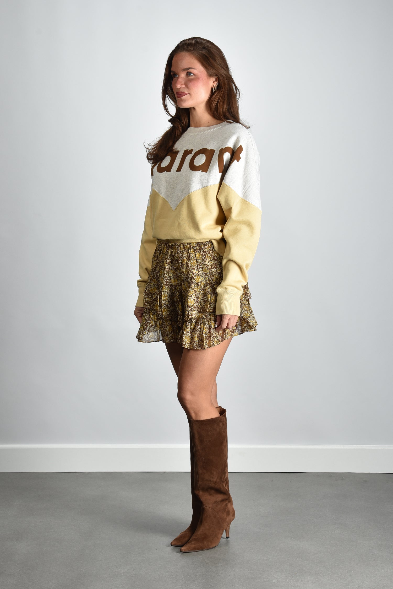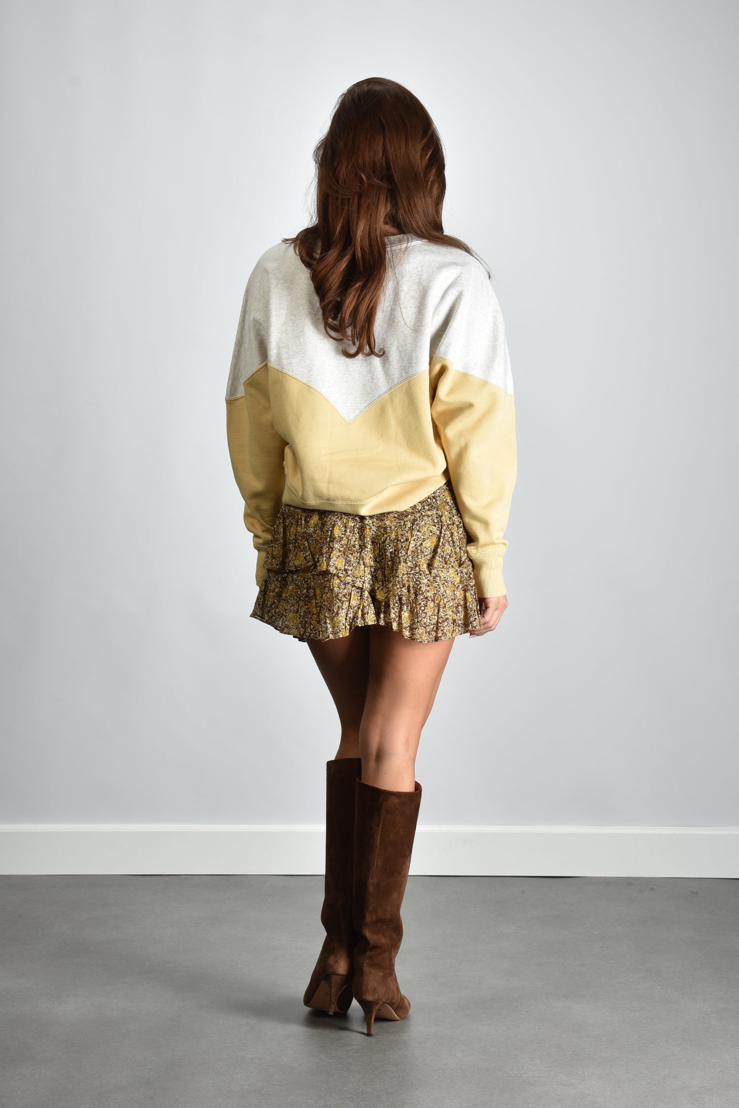 Our model Lise is 1,73m and Lise heeft maat 36/S/27. Deze trui valt normaal op maat