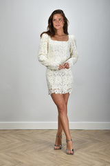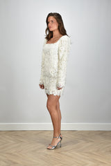 Rotate jurk met pofmouw kant beige