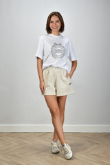 Our model Esmee is 1,74m and Esmee heeft maat 36/S/25. Dit short valt normaal op maat