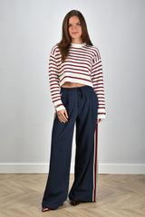 Here are the Weekend Max Mara trousers Marsala in Navy, designed for a refined look. Made from 72% cotton and 28% polyester, these trousers offer a regular fit that combines comfort with style. Perfect care at 30°. Article number: MARSALA-002-Navy.