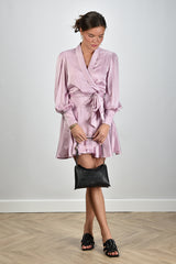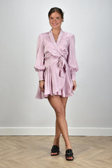 Here you can see the elegant Zimmermann dress Silk Wrap Mini in light pink. Made of 100% silk, this dress offers a regular fit and is perfect for various occasions. Lise wears size M and is 1.73m tall. Dry cleaning recommended. Article number: 8067DS25R.