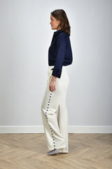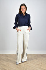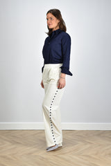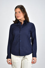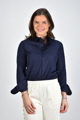 Mooie blouse van het merk Ami Paris, model Tonal ADC, in het blauw. De kleur wordt ook wel nautic blue genoemd. De blouse krijgt een klassieke uitstraling wegens de kraag en de subtiele knoopjes in de zelfde kleur als de blouse. Maak de look wat meer casual met een stoere jeans. Model heeft maat 38 en draagt maat 38.