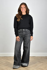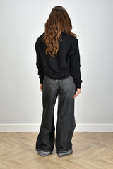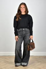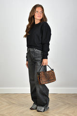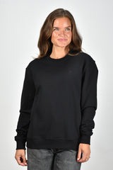 Kenmerkende trui van Ami Paris, model Coeur, in het zwart. Deze trui toont het iconische logo op de borst, tevens ook in een zwarte kleur. Deze samenstelling geeft een minimalistische en veelzijdige look, waardoor deze trui gemakkelijk te combineren is met verschillende outfits. Draag het met de Dame jeans van Agolde en sneakers van Hogan voor de complete look van de foto. Stijl de look af met een tas van Wandler. Model is 1,75m, heeft maat S en draagt maat S.