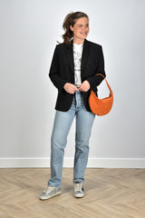 Mooie blazer van Anne Bing, in de kleur zwart. Een op herenmode geïnspireerde blazer in een recht silhouet met een single-breasted sluiting met twee knopen, een paspelzak op de borst, twee binnenborstzakken en twee functionele klepzakken op de heupen. Afgewerkt met twee verticale splitten onderaan de achternaden. Deze blazer is wat langer en boxer. Wij adviseren om je eigen maat te nemen. Gemaakt van volledig gevoerde lichtgewicht 100% wol om het hele jaar door te dragen.