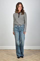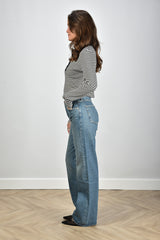 Ons model Lise is 1,73m en Lise heeft maat 38/M/28. Dit product heeft een normale pasvorm.