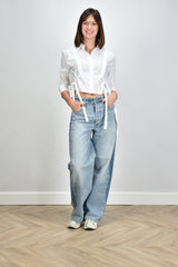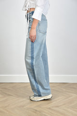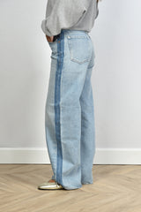 Hoe tof is deze jeans van Citizens of Humanity? Deze broek, model Ayla in de kleur tuxedo skylights, heeft de perfecte pasvorm. De jeans is high-waisted en een wijd model. Op de zijkant van de jeans staat een donkere streep, wat deze broek extra tof maakt. Deze broek valt normaal. Model is 1,73m, is maat 28 en draagt maat 28.