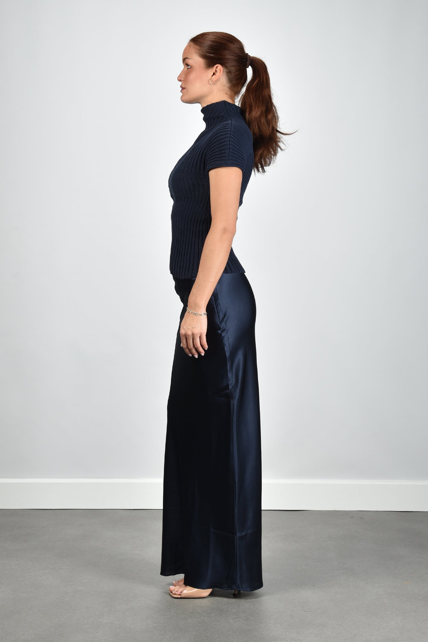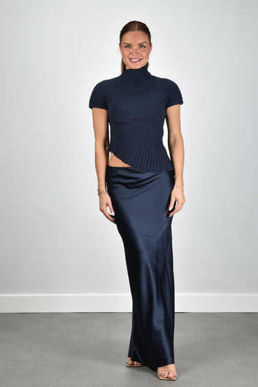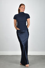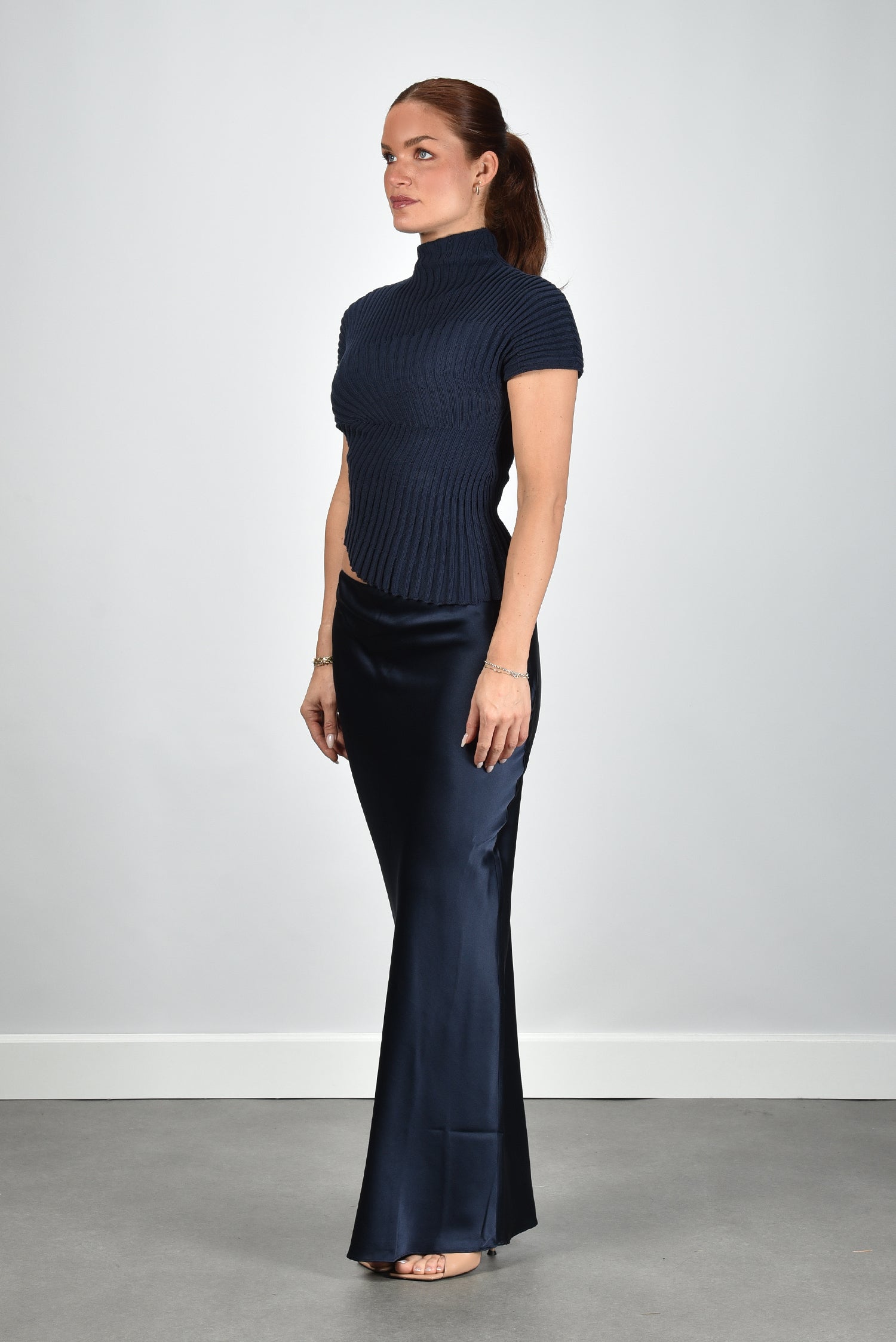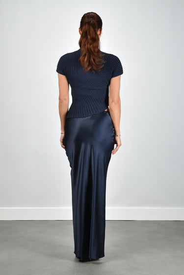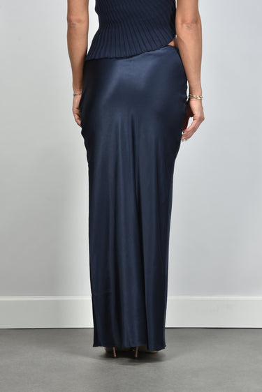 De zijde maxi rok Chantel van Cult Gaia heeft een vloeiende vorm die elegant recht naar beneden valt. De donkerblauwe kleur, ook wel deep lake genoemd, geeft het ontwerp diepte en rust. De lichte plooien in de stof zorgen voor extra vloeiing terwijl de rok zelf strak in zijn lijn blijft. De mix van 92% zijde en een vleugje elastane laat de stof zacht vallen met precies genoeg soepelheid. De pasvorm valt normaal op maat, wat het dragen eenvoudig maakt. Mooi te combineren met de Morobe sandalen Grace 36 nude voor een subtiele zomerlook. Zoals elk ontwerp van Cult Gaia is ook deze rok een klein kunstwerk, met aandacht voor vorm en materiaal die direct het karakter van het merk uitstralen.