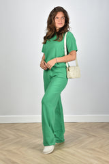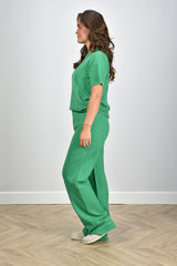 Cashmere items zijn één musthave voor elke kledingkast! Deze broek van Extreme Cashmere, model trousers 104, in de kleur pom, gecombineerd met bijpassend t-shirt is een heerlijke outfit voor de dagen dat het iets kouder is. Door het materiaal houdt de kleding van Extreme Cashmere je goed warm en behoudt hij zijn pasvorm ook nog eens optimaal. Model is 1,73 m, heeft maat 38 en draagt maat One Size.
