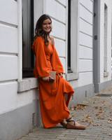 Geweldige tijdloze jurk van het merk Extreme Cashmere, model Swan 301 in de kleur Maple. Deze prachtige jurk, gemaakt van hoge kwaliteit cashmere geeft een chique uitstraling en is zo wel casual als chique te dragen. Combineer met de bijpassende bolero van Extreme Cashmere in de kleur maple voor de complete look van de foto! Model is 1,74m , heeft maat M en draagt maat ONE SIZE.